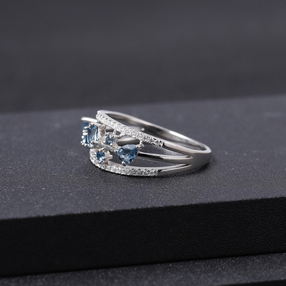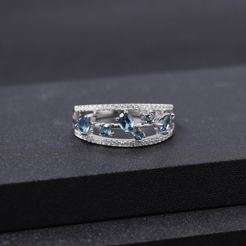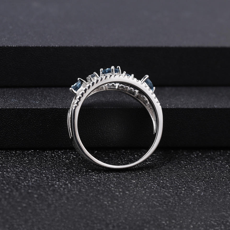 Stock Vintage Series 925 Silver Inlaid London Blue Crystal Gemstone Ring Women's Wedding High Elegance Hong Kong Sample Making