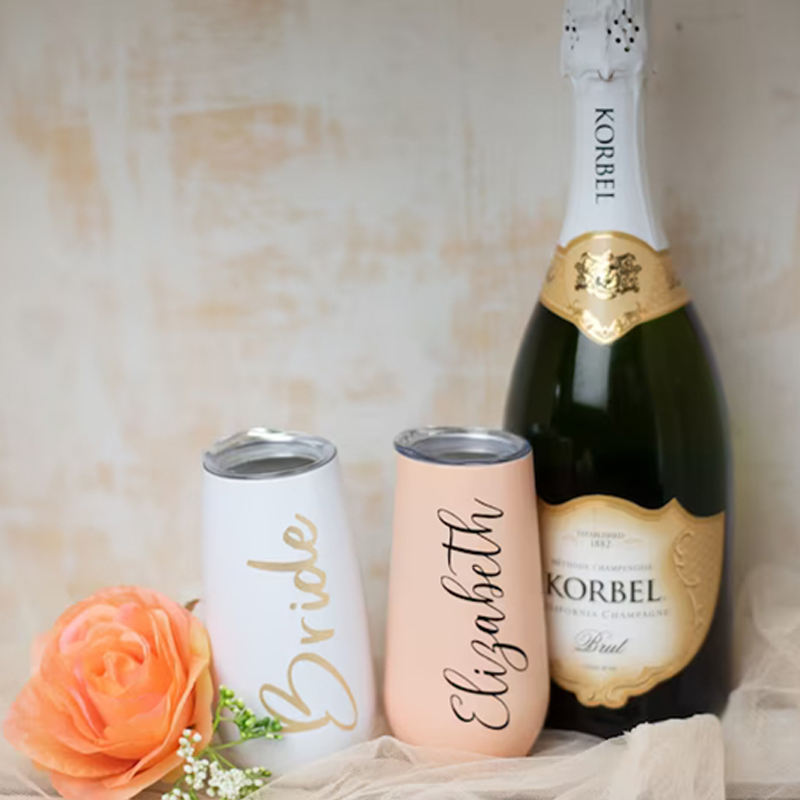 In Stock Stemless Steel 6oz Insulated for Tumbler Custom White for Flutes Bridesmaid for Wedding