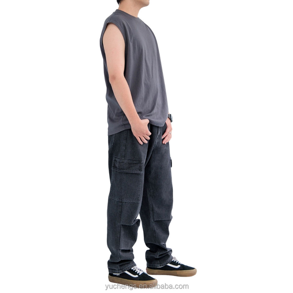 In Stock Wholesale High Quality Mid Waist Cargo Wide Leg Baggy Pants Premium Denim Jeans Mens Jeans Men Jeans Pants