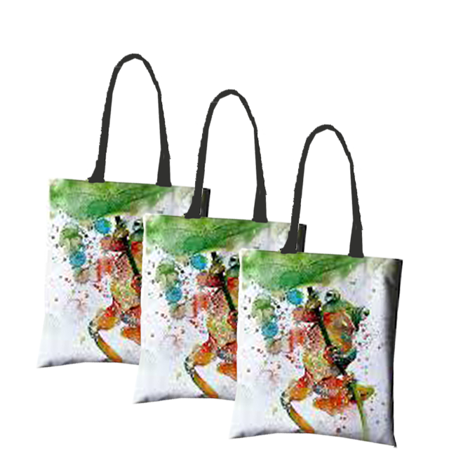 Cute Self-Handle 100% Cotton Tote Bag with Animal Print Design Side Screen Printing Manufactured in West Bengal
