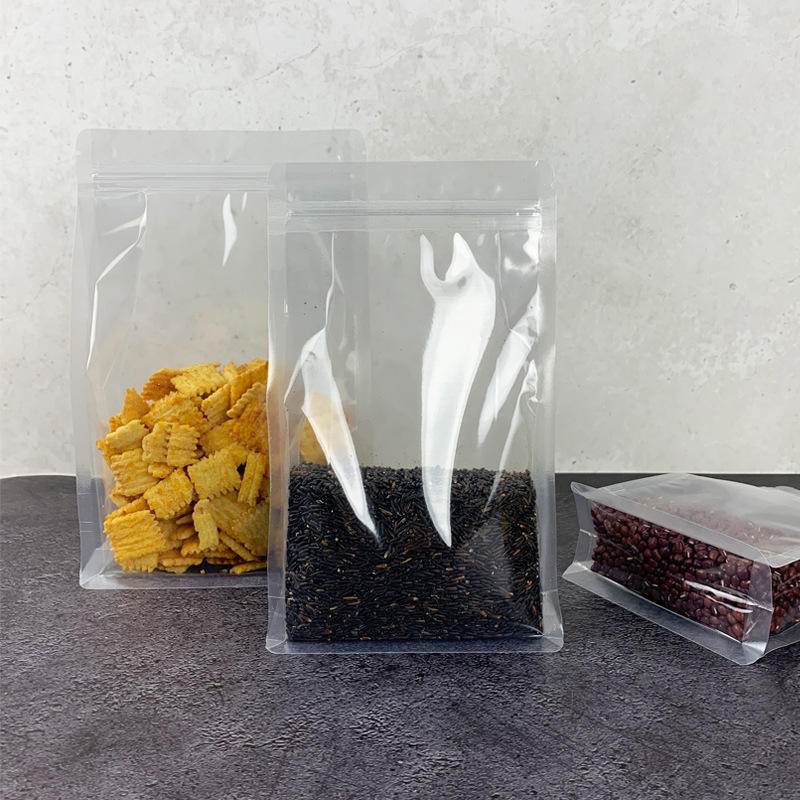 In Stock Foil Flat Stand up Pouches Ziplock Bottom Glossy Aluminum Eight Side Seal Bags Food Packaging with clear Front
