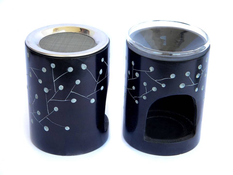 Incense Essence Fragrance Aromatic Aroma Oil Burner Black Soapstone Diffuser With Dots Circle Carving With Glass Bowl and Sieve