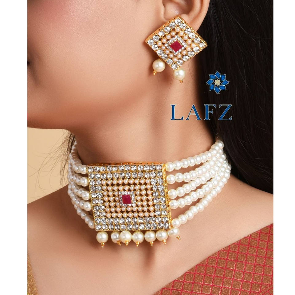 Product Name:Gold Plated Pearl Choker Necklace Set For Women