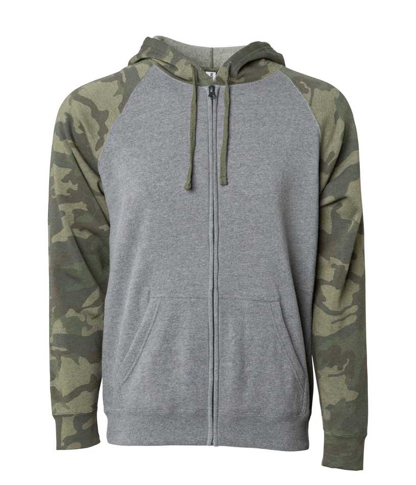 Independent Trading Co. Unisex Special Blend Raglan Full-Zipper Hoodies Hooded Sweatshirt Camouflage Print Zipper Front Hoodie