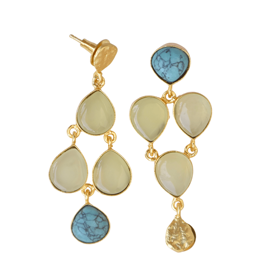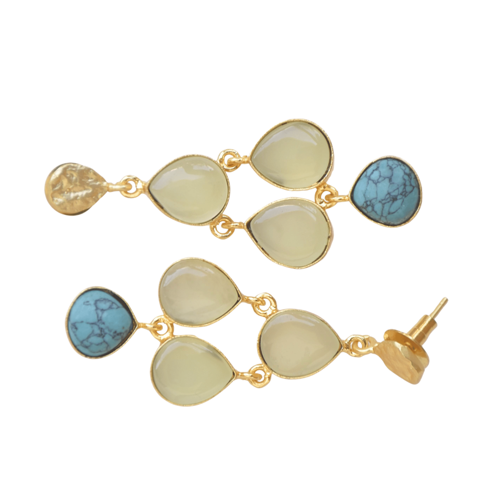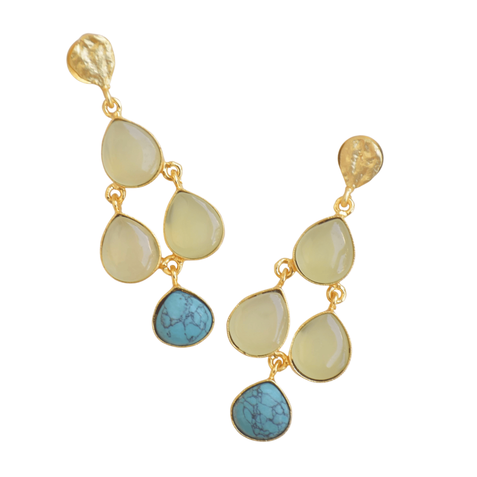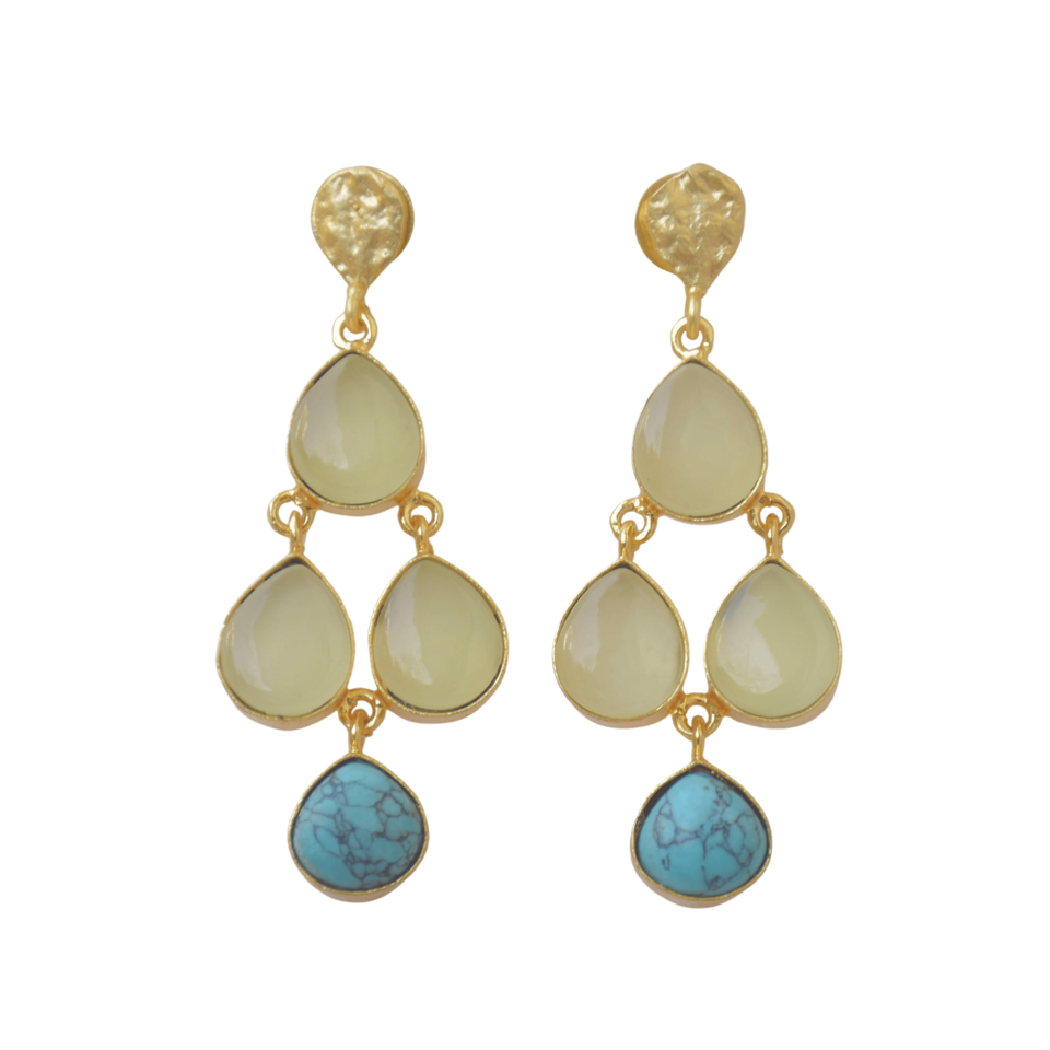 Premium Brass Cluster Earrings Gold Plated Raw Natural Stone Design High Polish Gold Plated Boho Chic Design Bulk Export