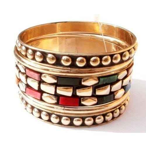 India Fashion Bangles Resin Beads With Metal Bangle Set of 6 Fashion Jewelry & Accessories Handmade Direct Factory Sale