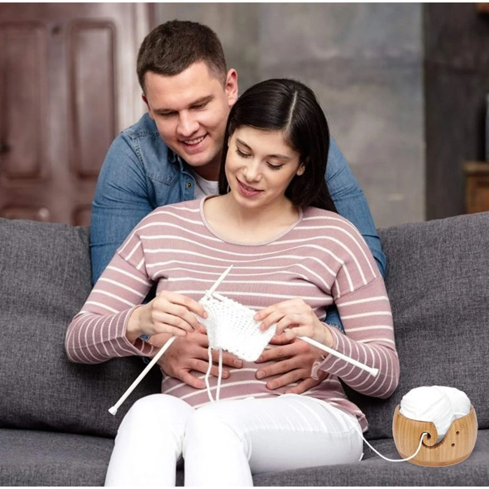 India Handicraft Handmade Wooden Yarn Bowl Yarn Holder Knitting Wool Yarn Ball Bowl with Natural Wood Sewing and Needle