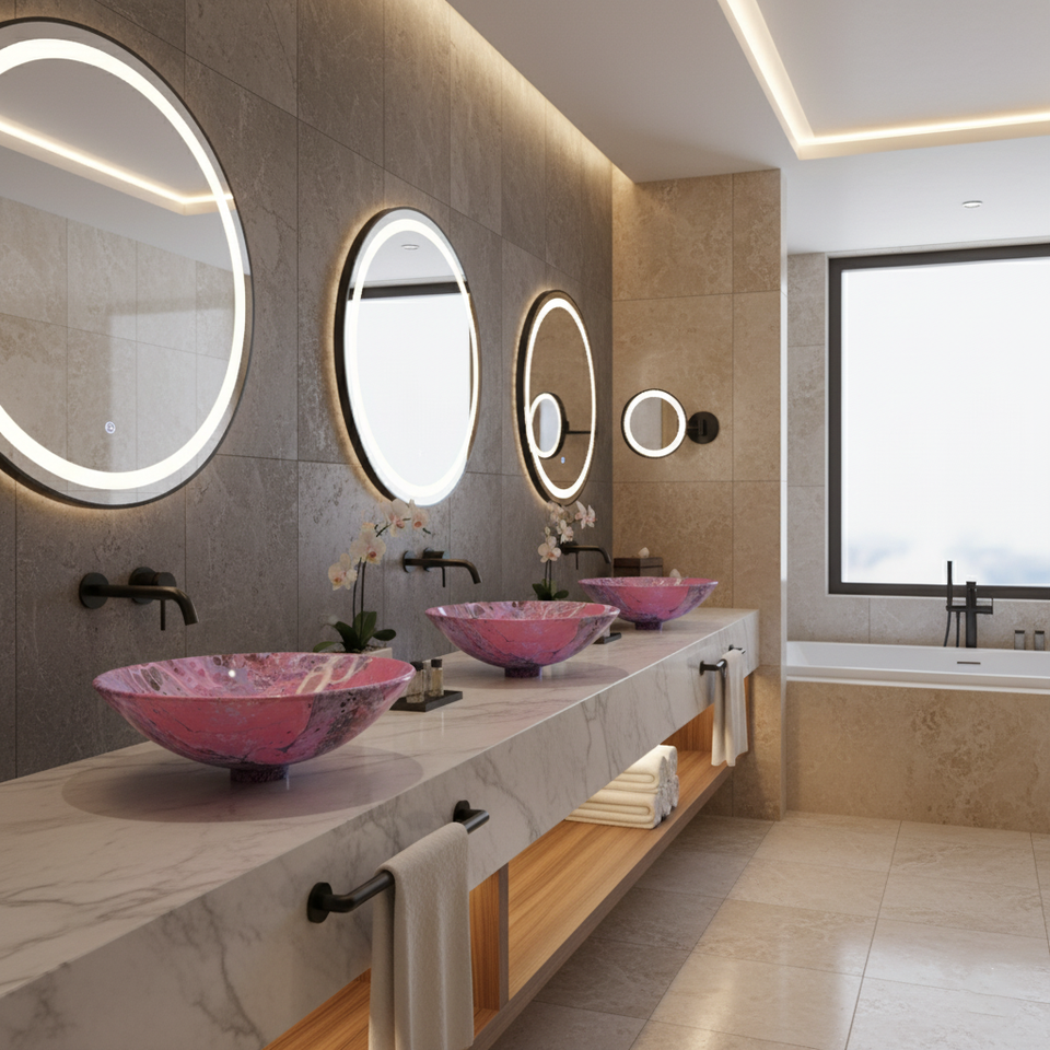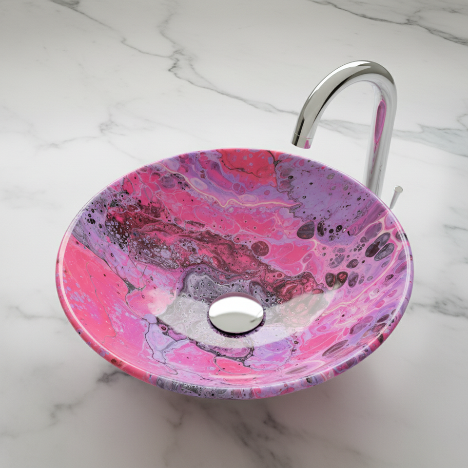 India Supplier Multicolor Marble Metal Counter Top Round Art Wash Basin Modern Table Top Bathroom Sink Factory Direct Exporter