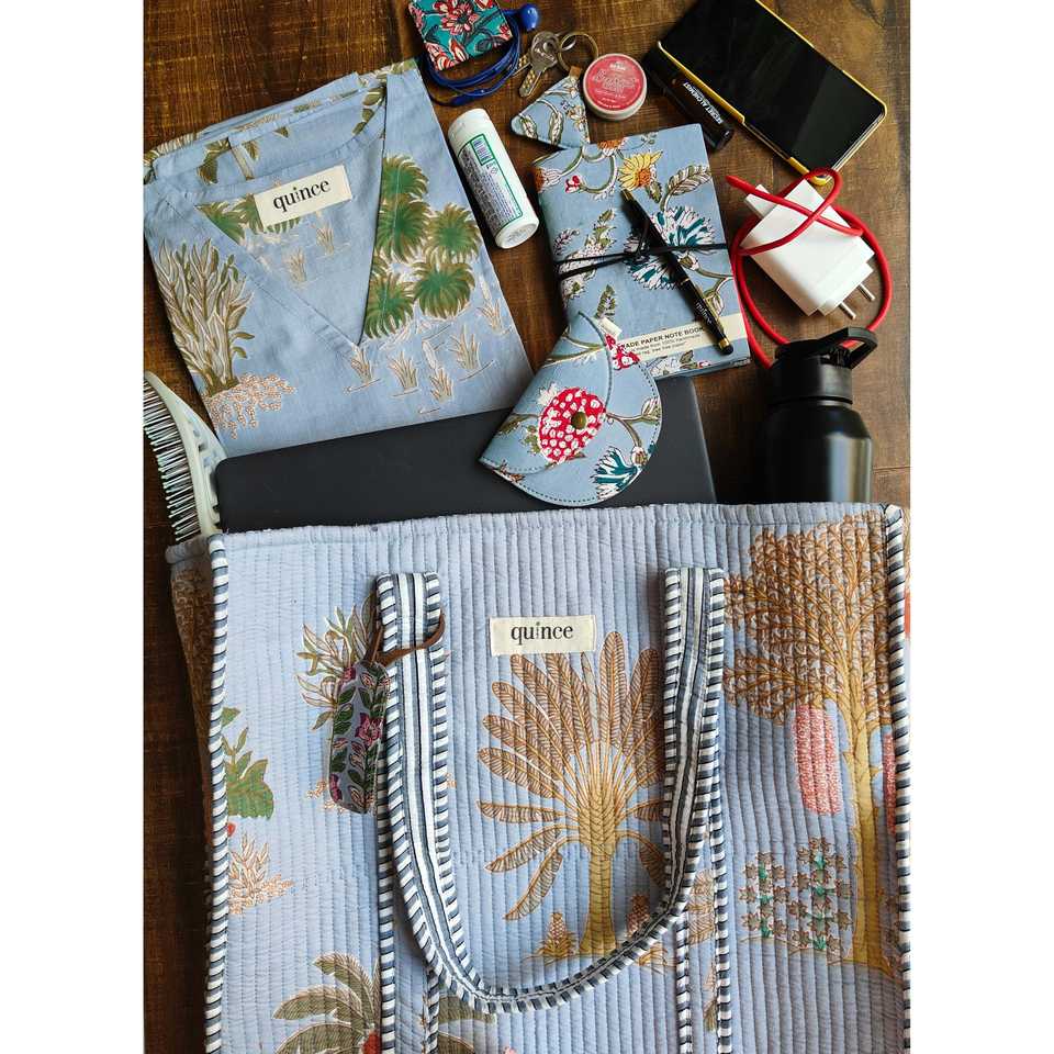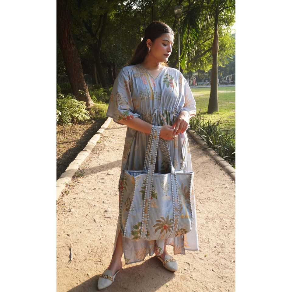 Indian 100% Cotton Quilted Floral Women Tote Bag, Handmade Cotton Shoulder Bag, Printed Quilted Handbag, Eco Friendly Cotton Bag