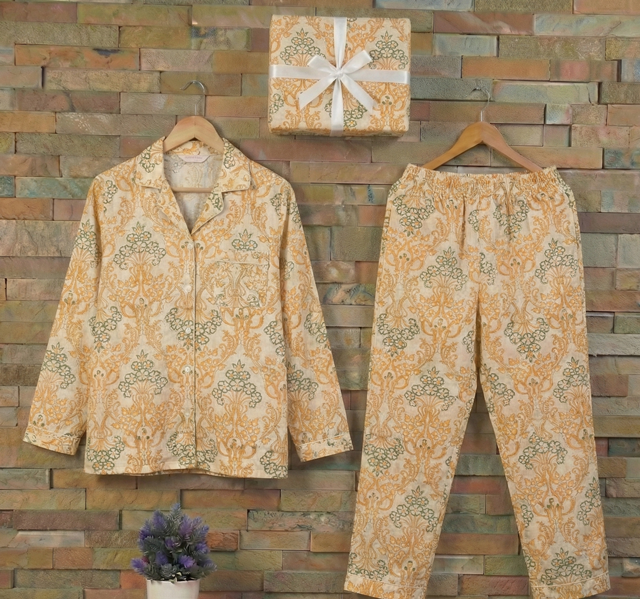 Indian 100% Pure Cotton Woven Women's Pajama Set Soft V-neck Long Sleeves Solid Thermal Breathable Quick Dry Casual