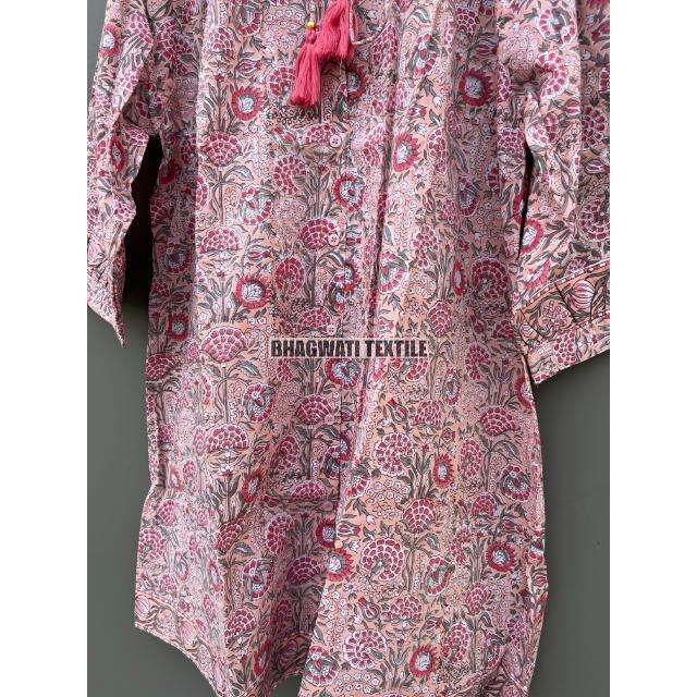 Indian 2024 Summer New Floor-Length Dresses Hand Block Floral Printed 100% Cotton Long Sleeve Casual Dress