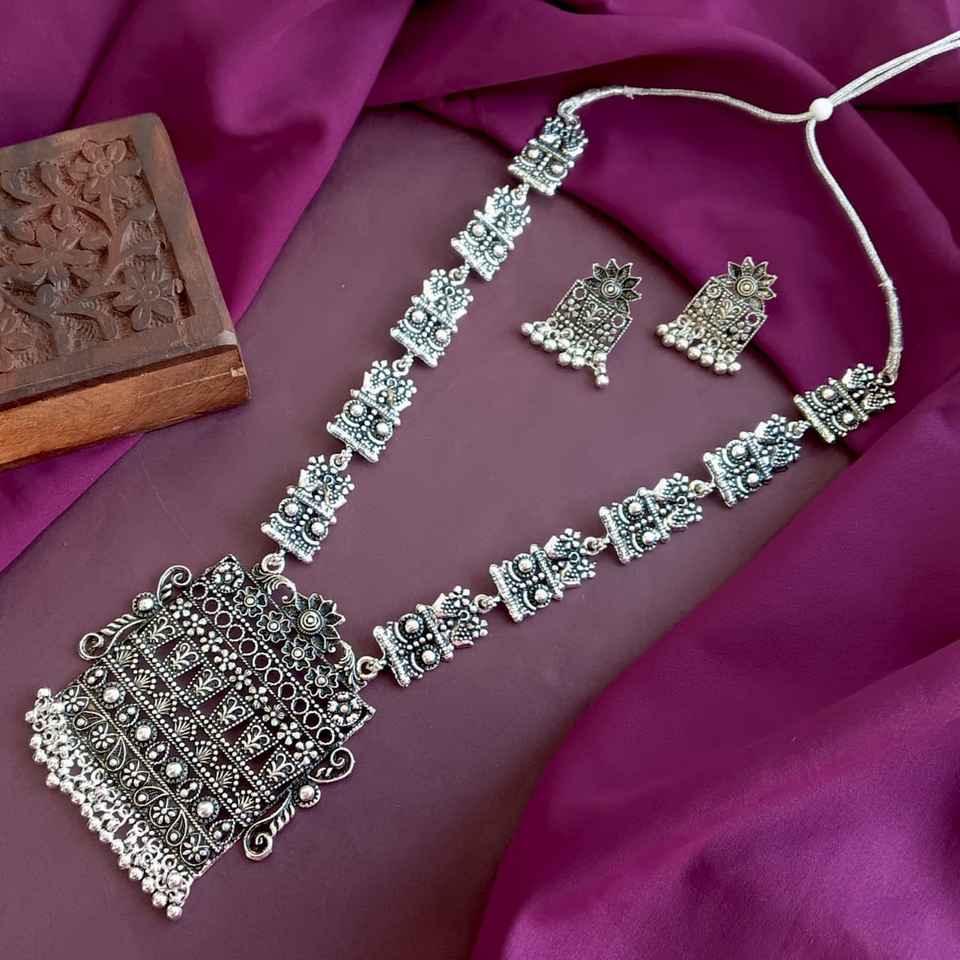 Oxidized Antique Silver Tone Choker Necklace Earrings Jewelry Set