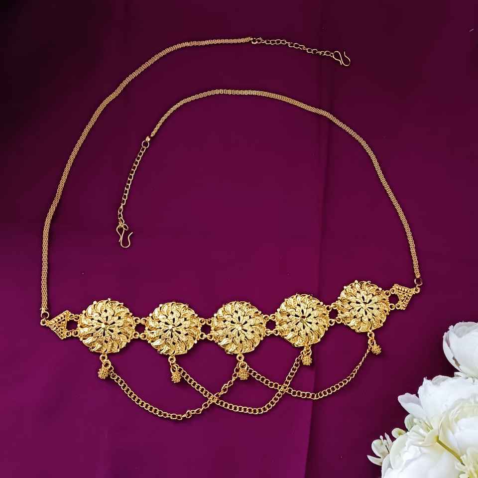 Feature:Embellished with Big Round Floral Layered Chain with Ball work