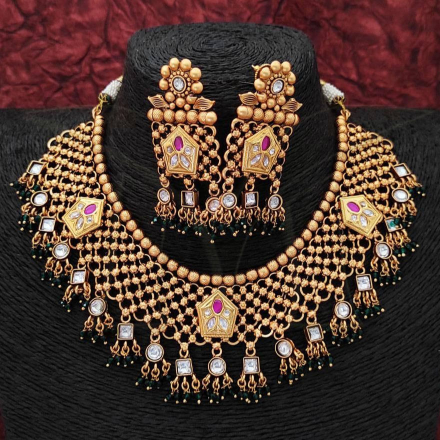 Indian Antique Jewelry Rajwadi Polish Antique Designer Fancy Party Wear Religious Jewelry From India Antique Short Necklace Set