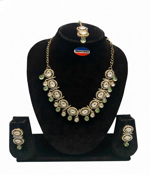 Indian Antique Kundan Gold Fashion Jewelry Set Necklace with Earrings Bridal Wedding Party Wear Traditional Ethnic Jewelry