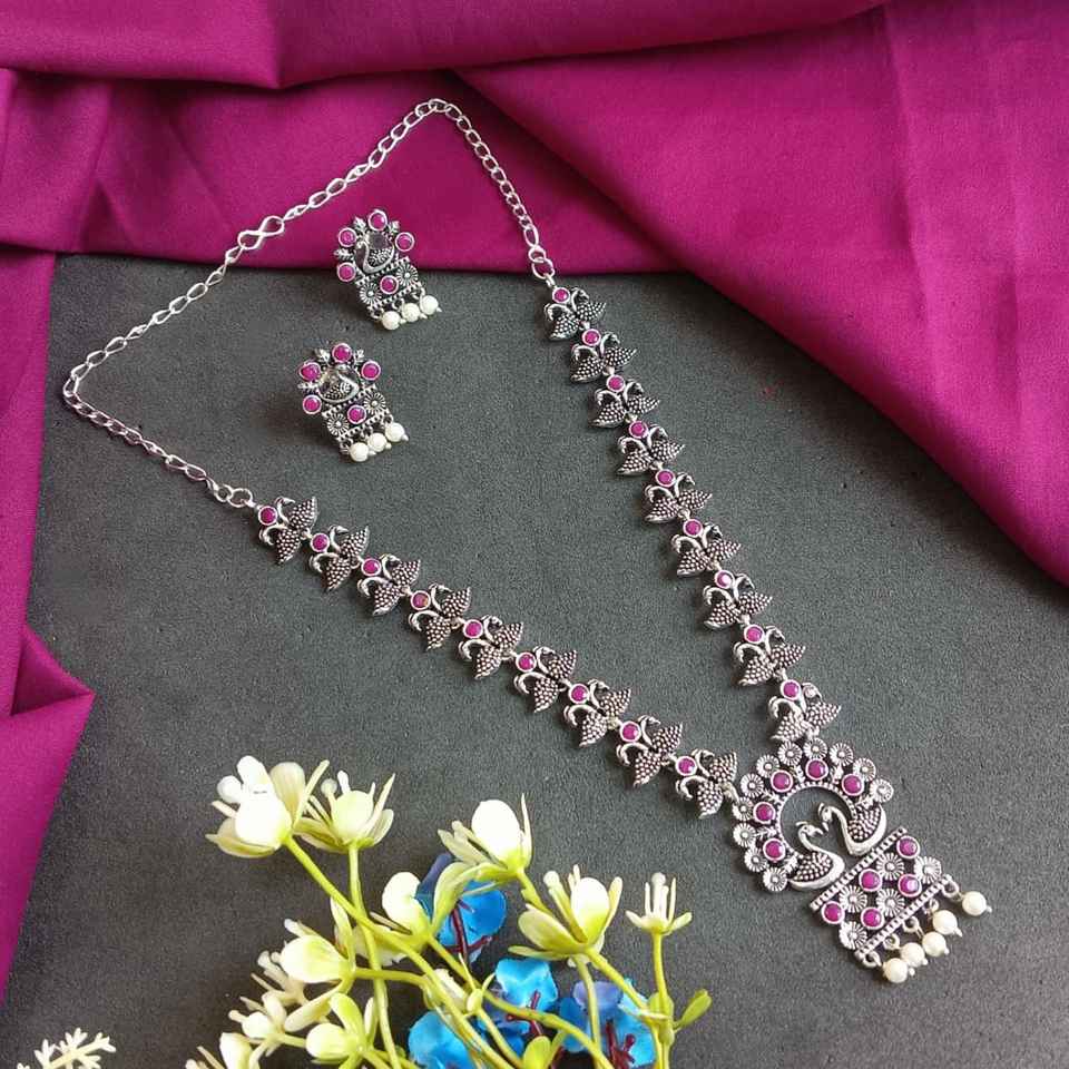 Oxidized Antique Silver Tone Choker Necklace Earrings Jewelry Set