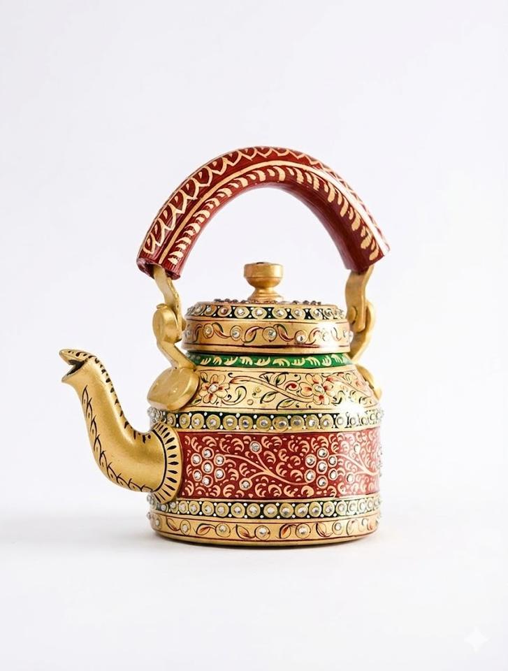 Indian Antique Tea Kettle Hand Painted Crafted For Home Cafe Restaurant Gifting Serving Indian Tea Kettle