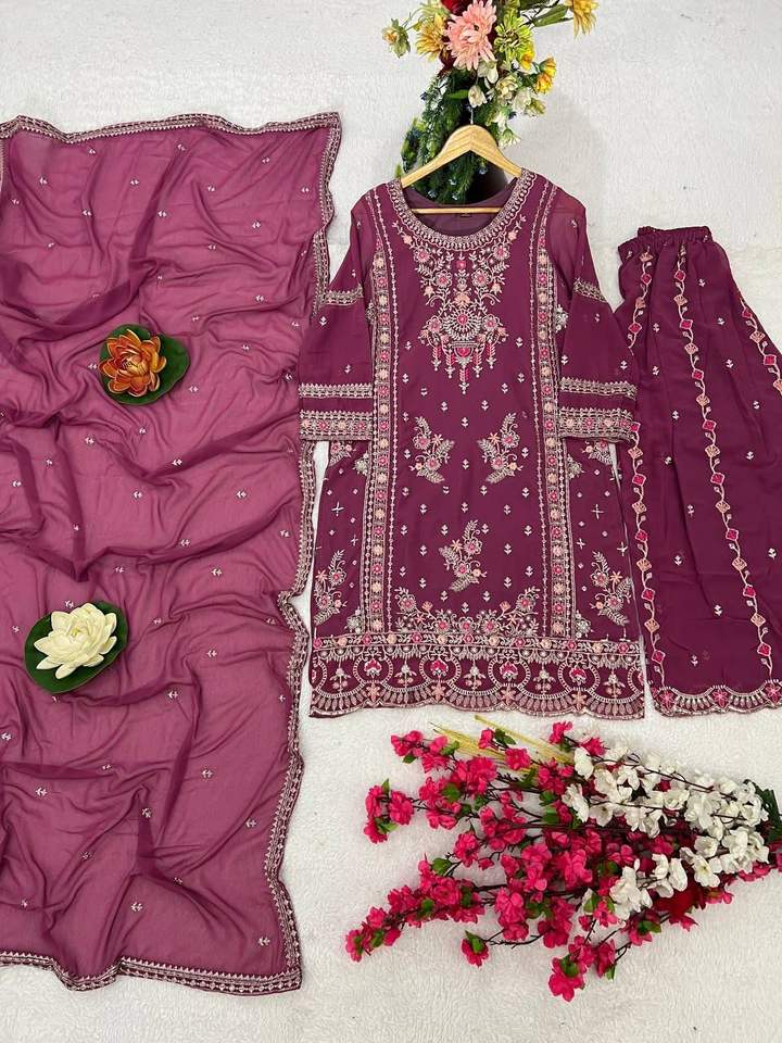 Product Name:Faux Georgette Silk Sequence Embroidery Top & Palazzo With Dupatta
