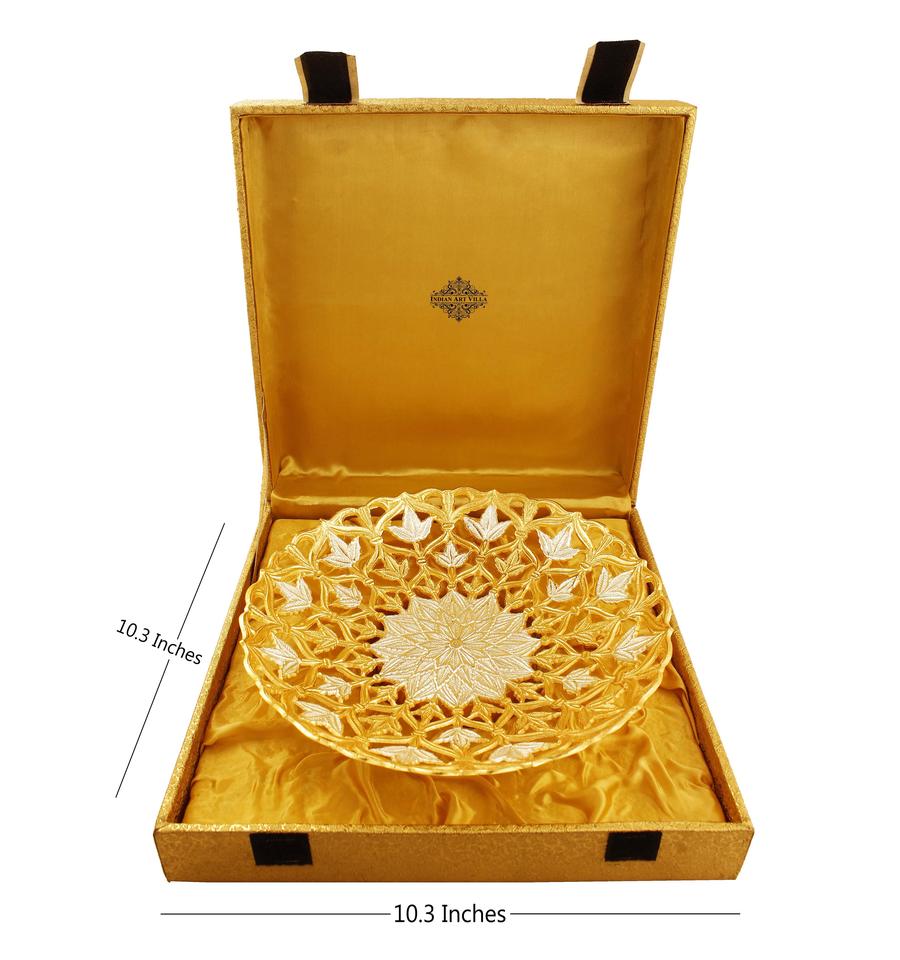 Indian Art Villa Handcrafted Pure Silver & Gold Plated Leaf Design Big Bowl for Serving, 10.3 Inch