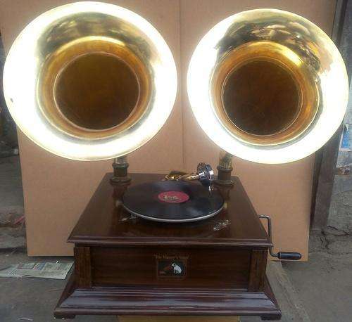 Indian Art Vintage Handcrafted Brass Gramophone With Wooden Square Box Cheaply Available With Indian Manufacturer