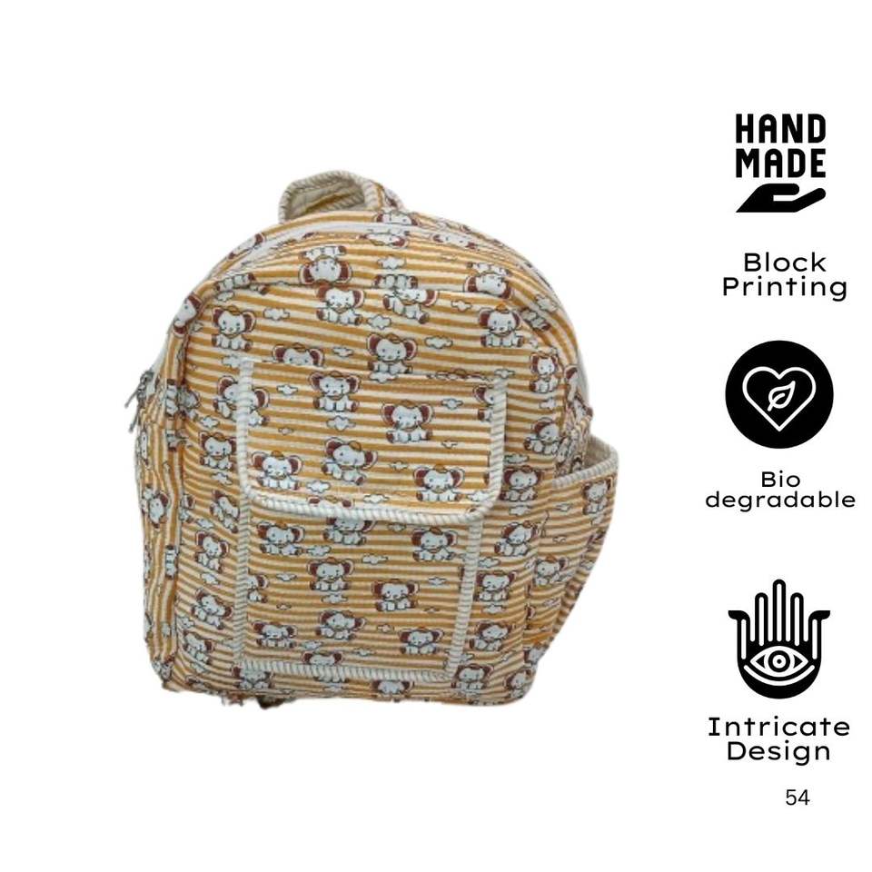 Indian Artisanal Animal Prints Quilted Cotton Backpack Handmade Eco-Conscious Multi-Pocket Travel Bag Zipper Closure Durable