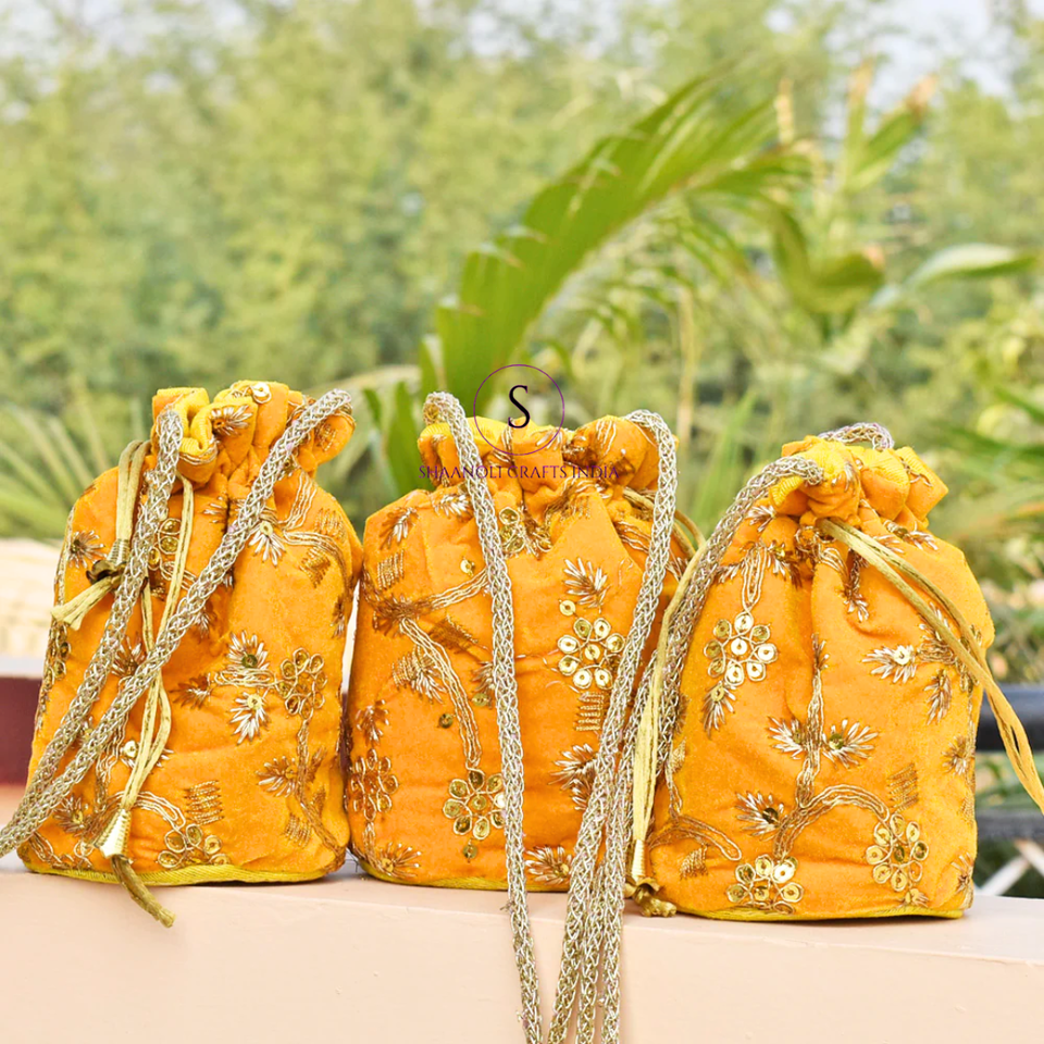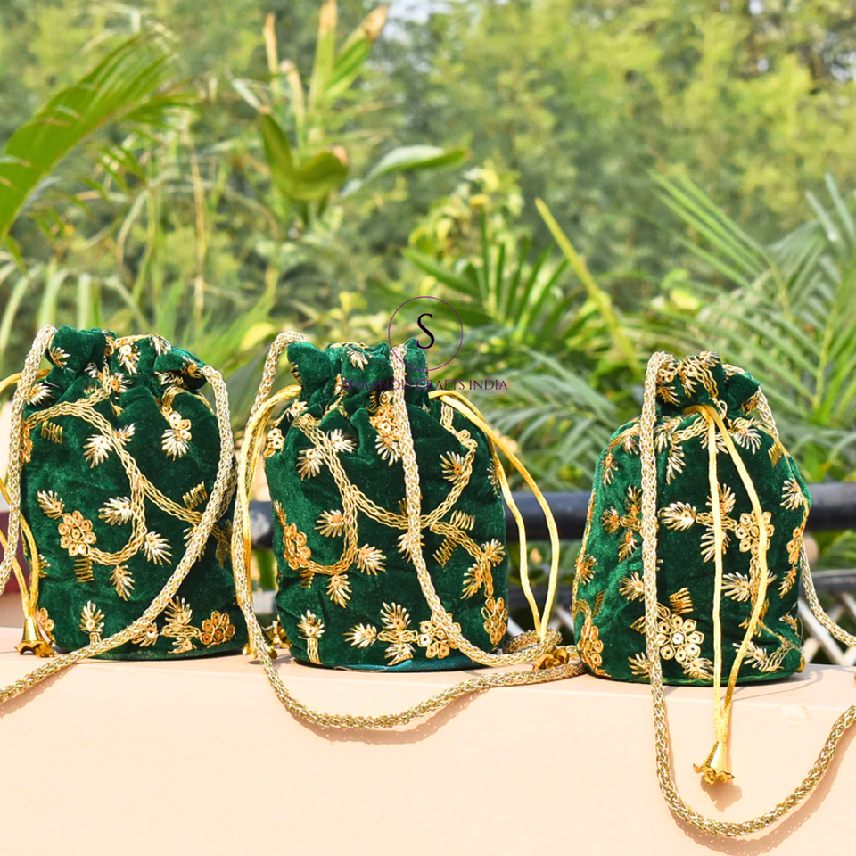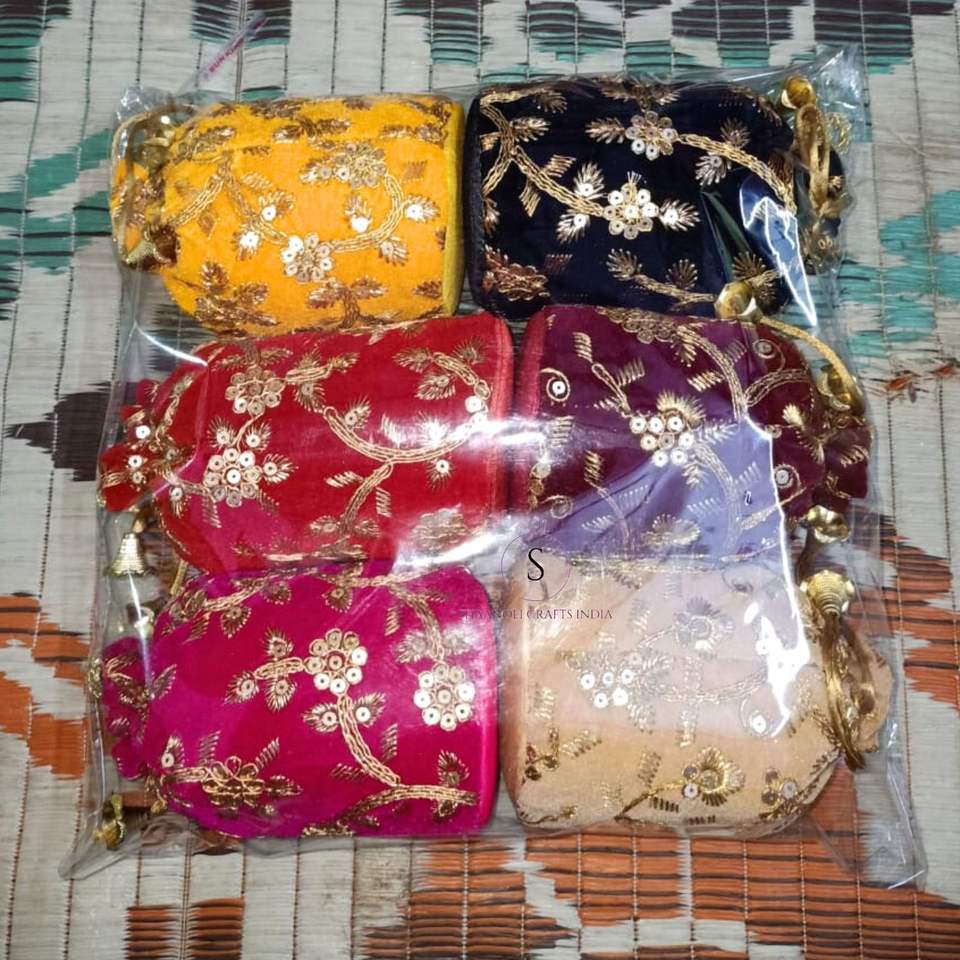Indian Attractive Handmade Women's Embroidered Velvet Potli Purse Bag Pouch Drawstring Bag Style Handbag for Weddings and Gifts