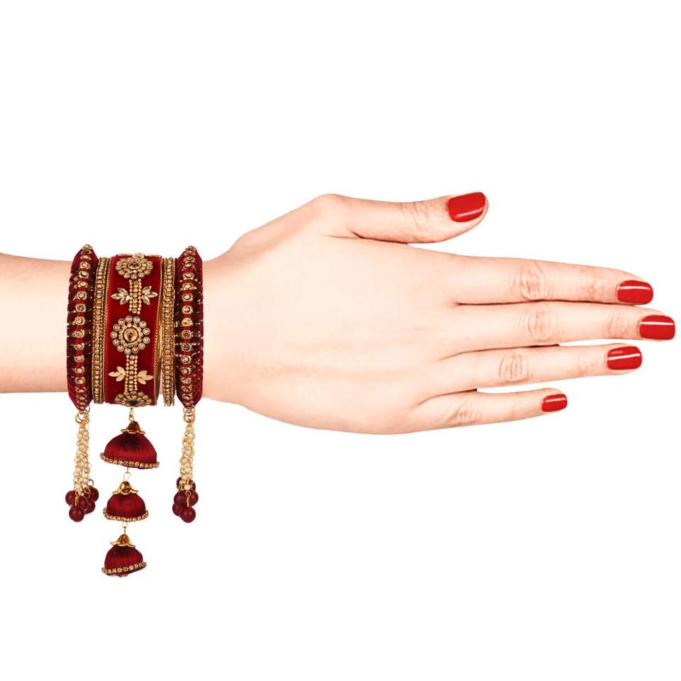 Indian Bangle Set CZ Crystal Karva Chauth Silk Thread Velvet Bangle Bracelets Jewelry for Women Girls