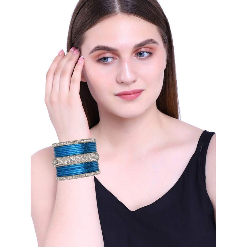 Design:Elegant CZ crystal studded Indian bangle bracelet set