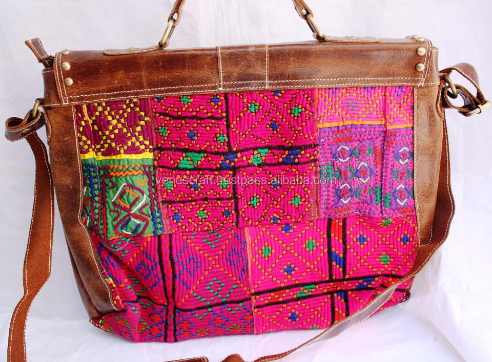 Indian Banjara Gypsy Handbag Women's Shoulder Sling Bag Genuine Leather Handle Embroidered Bag Traditional Designer Tote Handbag
