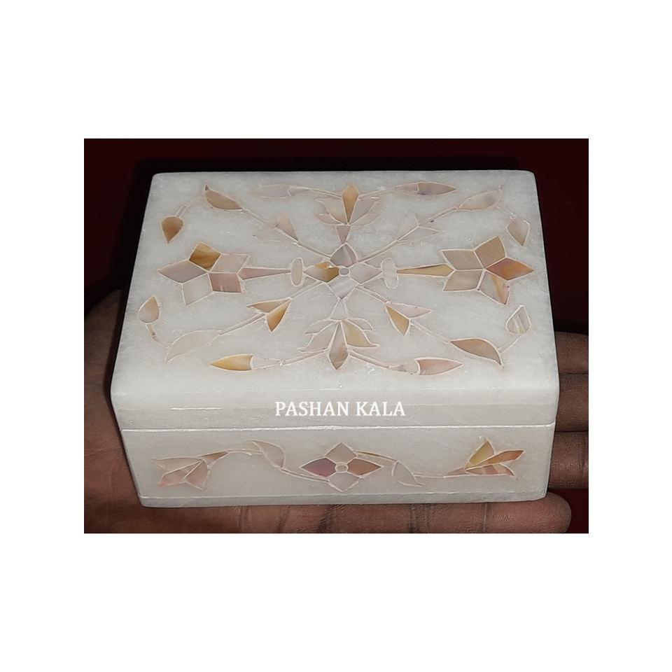Indian Best Quality White Marble Inlay Flower Design Jewelry Boxes For Corporate Gift And Wedding Rings Wholesaler And Supplier