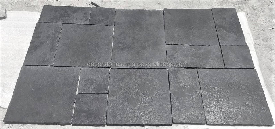 Decor Stones Indian Kadappa Black Limestone Antique Finish Paving Slabs French Opus Pattern Pathways Outdoor Indoor Flooring