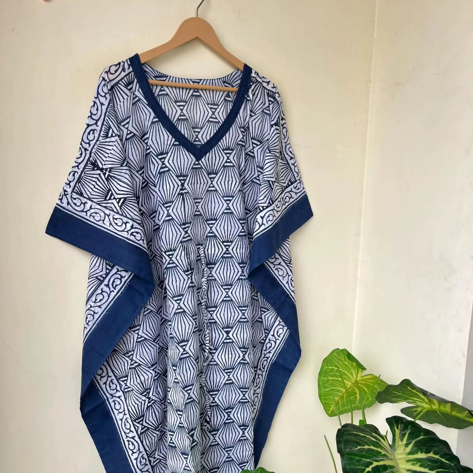 Indian Block Print Cotton Kaftan Long Caftan Dress For To Be Moms Beach Cover Up Sleepwear Kaftan Maxi Dress Bikini Cover Up