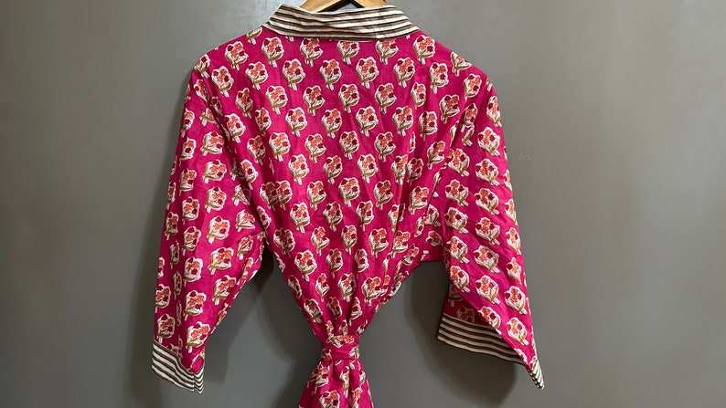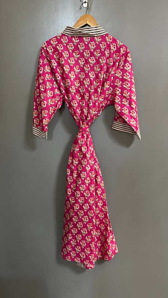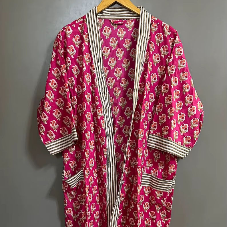 Indian Block Print Floral Cotton Kimono Robe Boho Beach Cover Up For Women