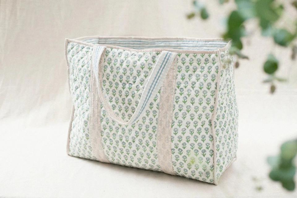 Indian Block Printed Cotton Quilted Women's Tote Bag Bohemian Vintage Handmade Washable Daily Use Shoulder Bag Grocery Tote Bag