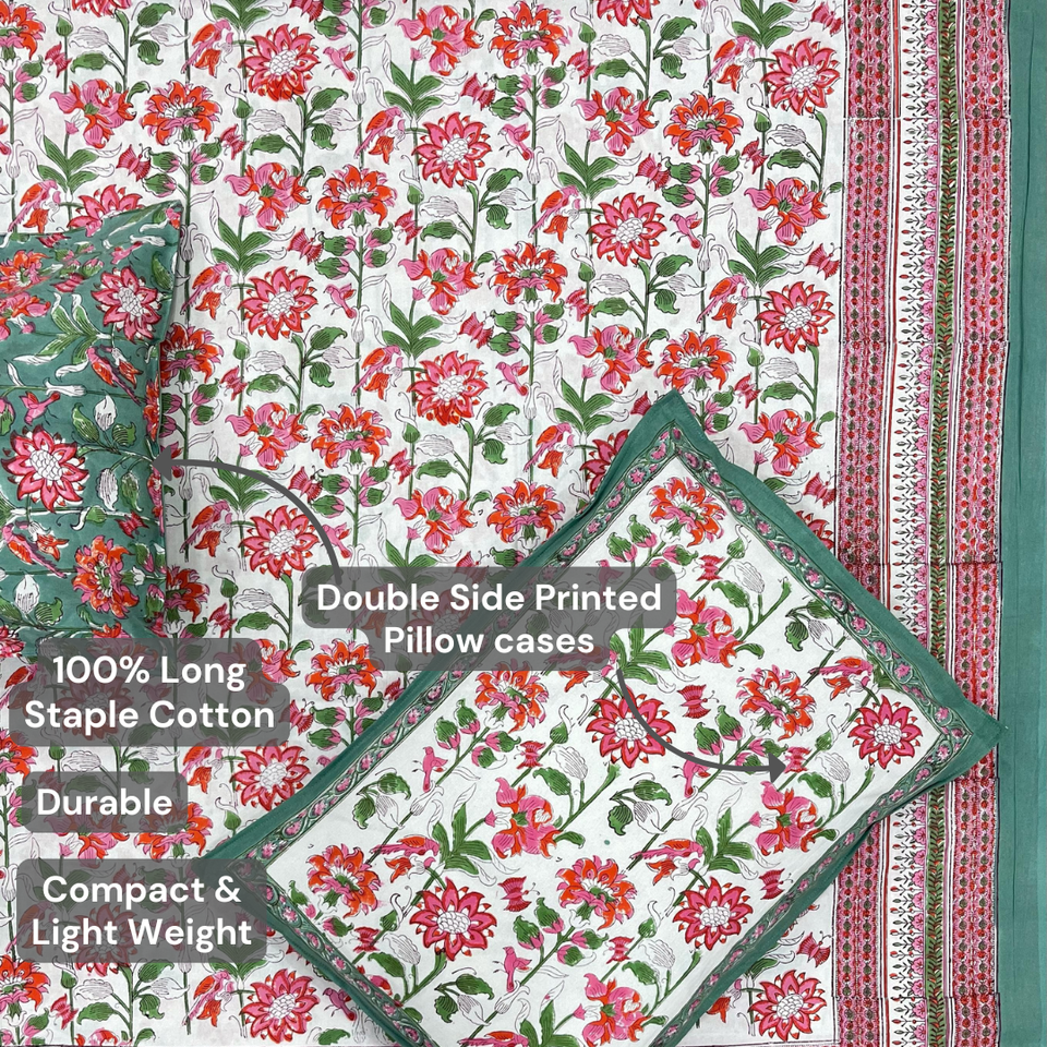 Indian Block Printed White Pink Floral Bedsheet Pure Cotton King Size (108"x108") Handcrafted in Jaipur for Bulk Buy Bedding Set