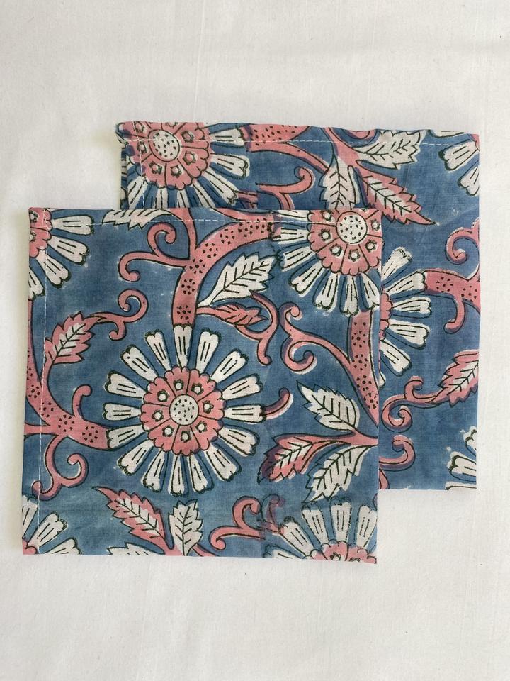 Indian Blue Floral Farmhouse Decor Dinner Napkin Handmade Wedding Decor Table Napkin Cocktail Cotton Block Printed Cloth Napkin
