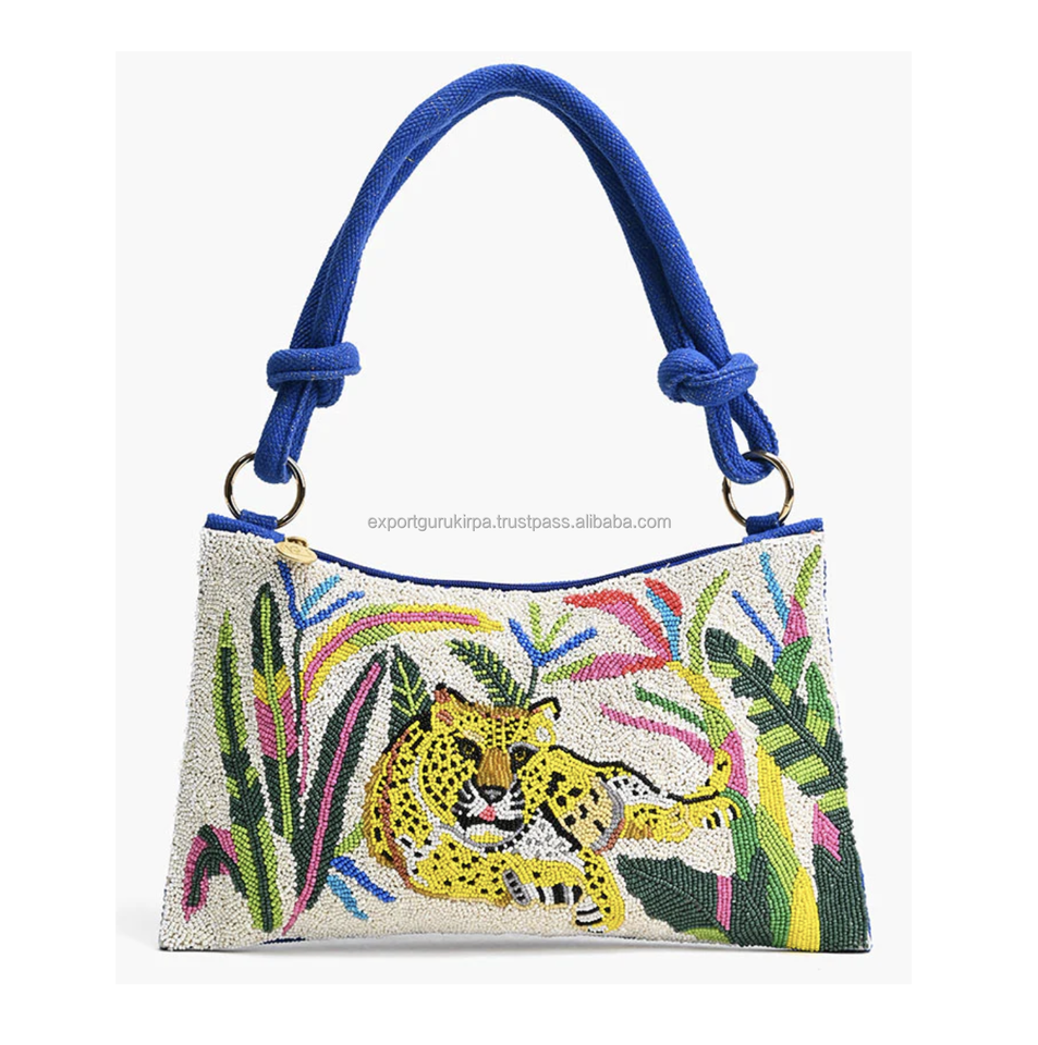 Indian Bohemian Designer Sling Bag for Women Handmade Beaded Clutch with Embroidery Fashionable Canvas Evening Messenger Bag