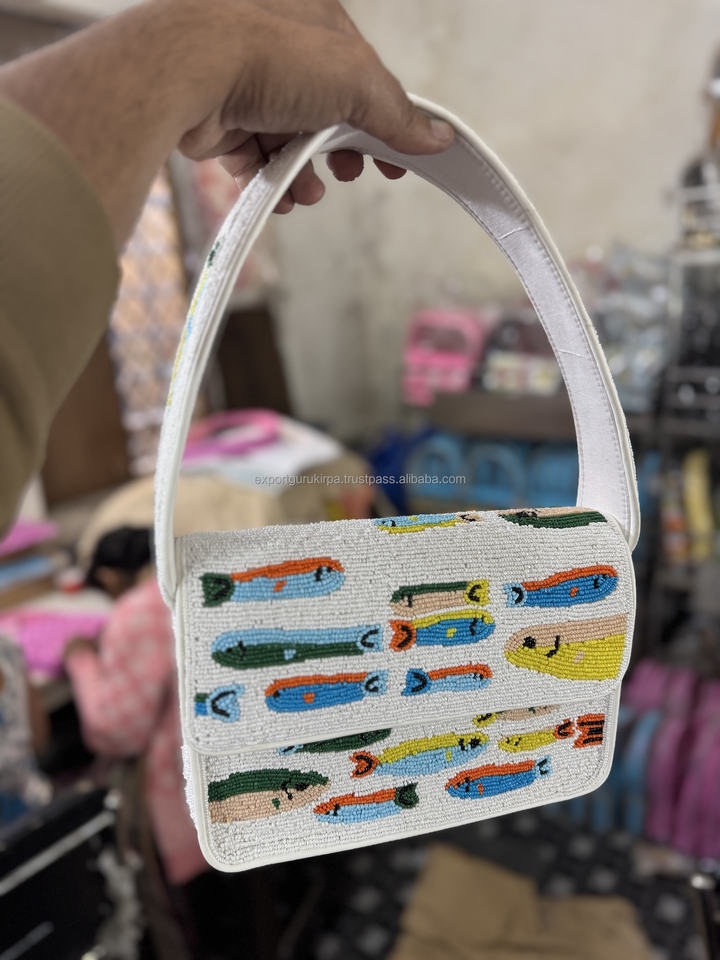 Indian Bohemian Style Women's Durable Handmade Large Capacity Messenger Bag Beaded Clutch for Daily Evening Shopping Boho Style