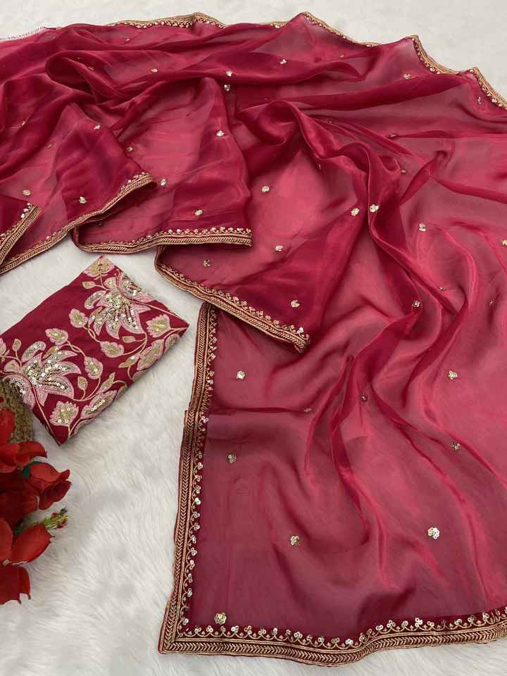 Indian Bollywood Designer Women's Silk Saree with latest Blouse Beautiful Ethnic Heavy Work and Red Colour Sequence Work Sari