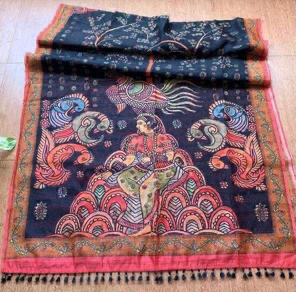 Printing Methods:Digital Print Saree With Kalamkari Print