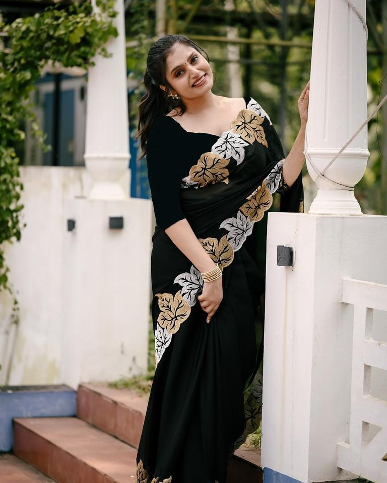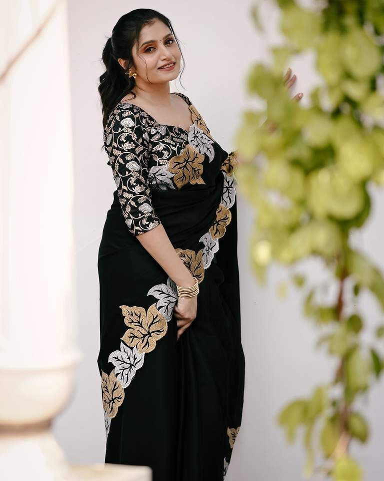 Printing Methods:Beautiful Designer jari Thread Embroidery work of Leaf Design with Cutwork Borde
