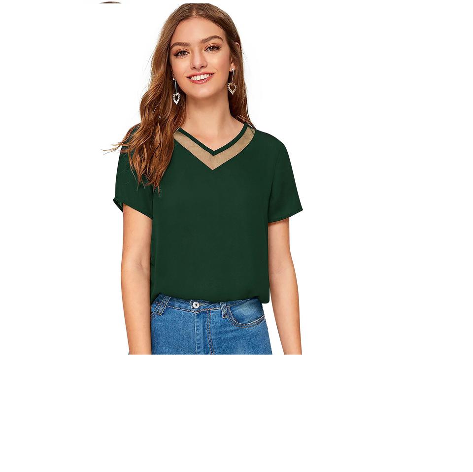 Indian Boutique Latest Exclusive Indian Green Color Trendy Knitting Tops Comfortable Regular Wear for Female Women Short Tops