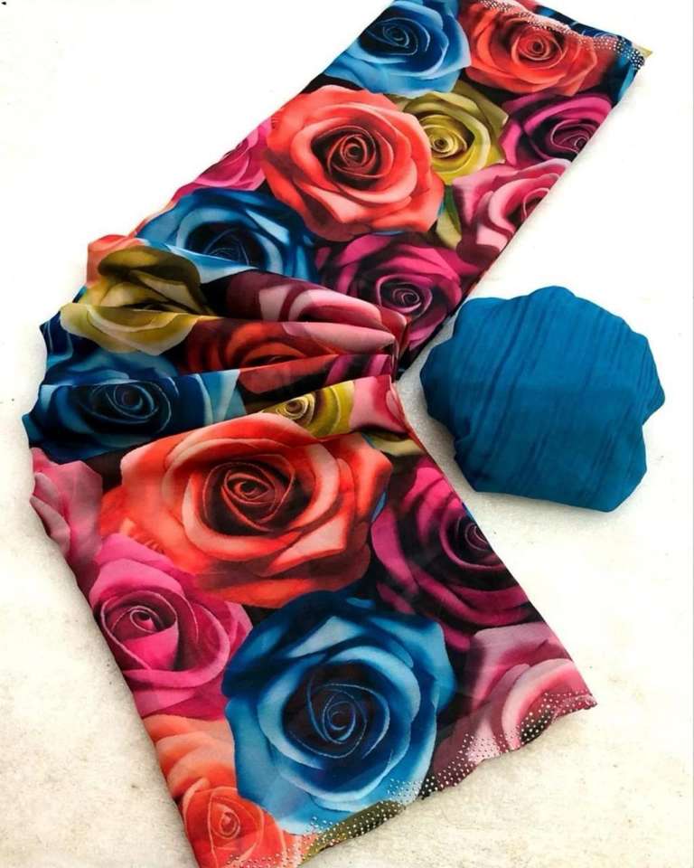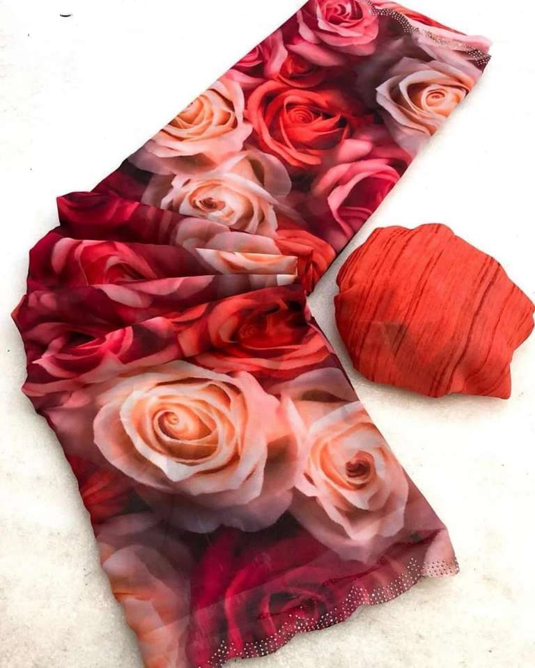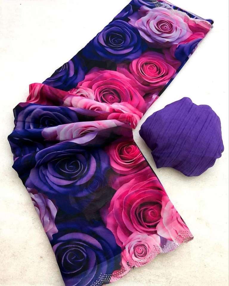 Indian Boutique's Latest Trendy Floral Digital Printed Ethnic Wear Saree Marsh Mellow Georgette Fabric for Parties