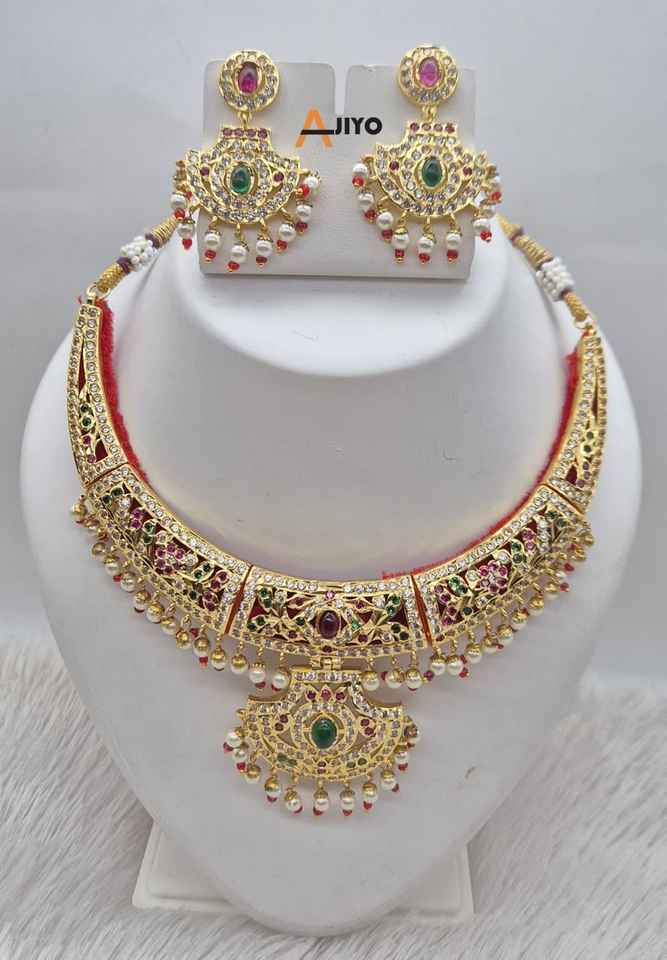 Indian Bridal Bollywood Gold Plated Necklace Set Luxury Jadau Choker with AD CZ Hasli Ruby for Women/Girls' Wedding Party Wear