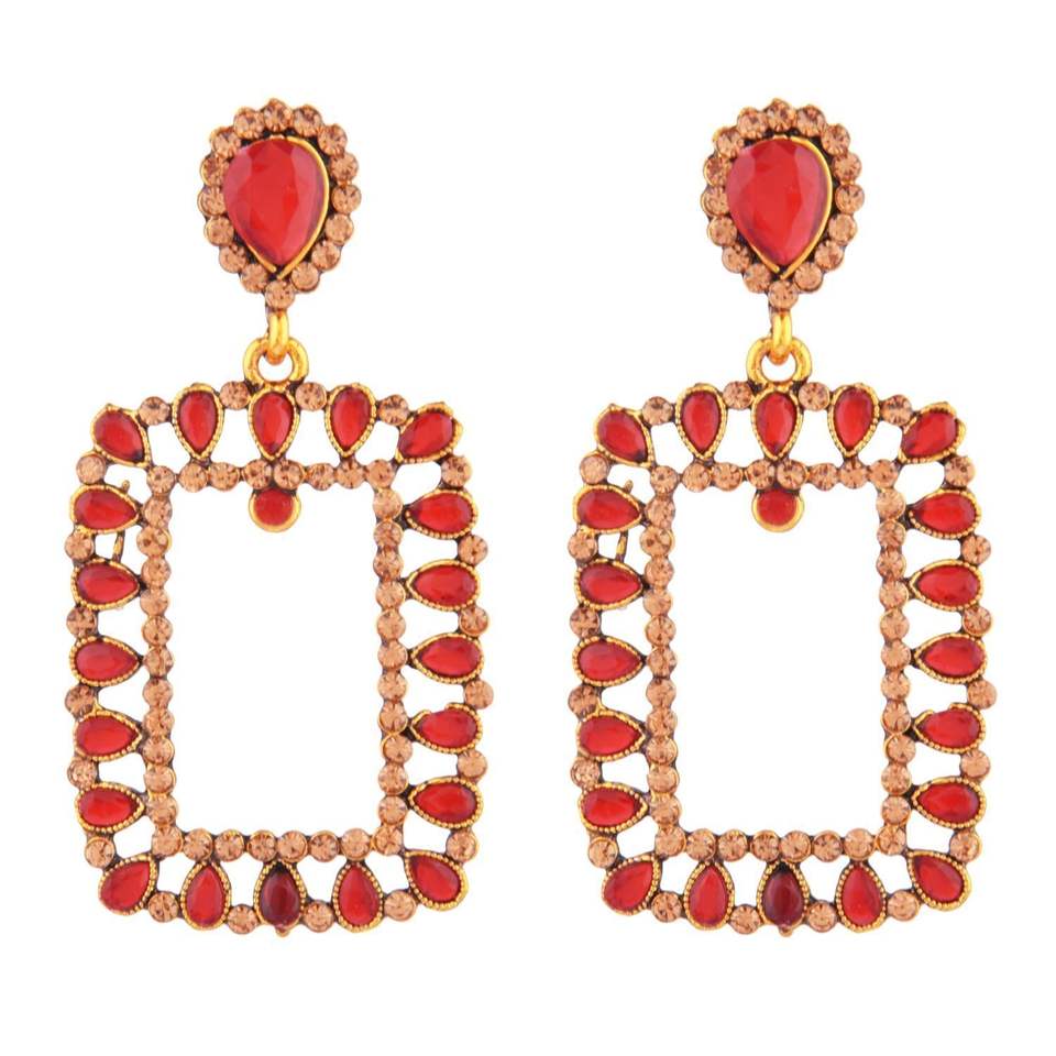 Design:Antique handmade boho vintage oxidized gold tone geometric earrings