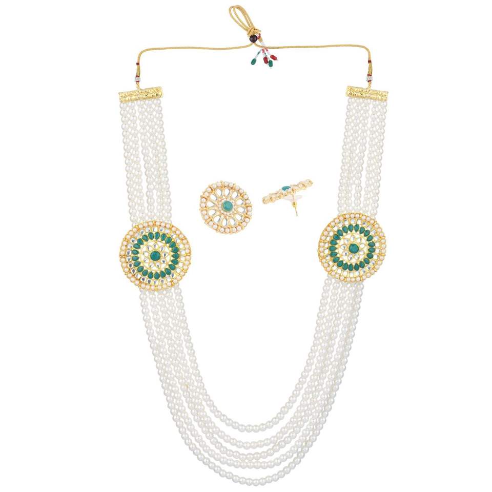 Indian Bridal Gold Jewelry Necklace Sets Faux Pearl Beaded Multi-Layered Strand Necklace Green Crystal Earrings Gold Weddings