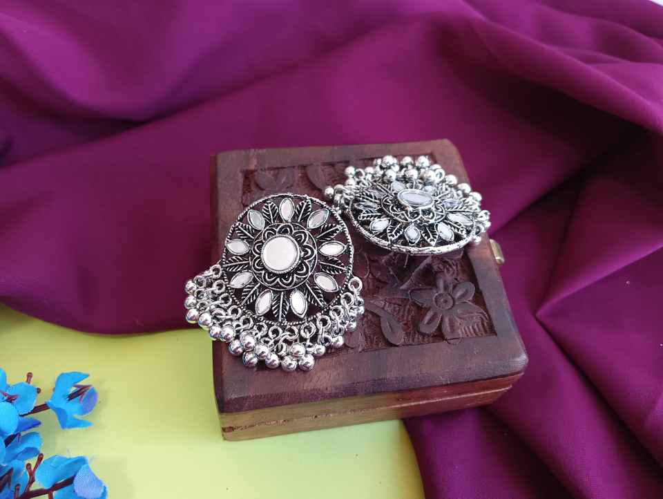 Design:Oxidized antique silver tone choker necklace earrings jewelry set