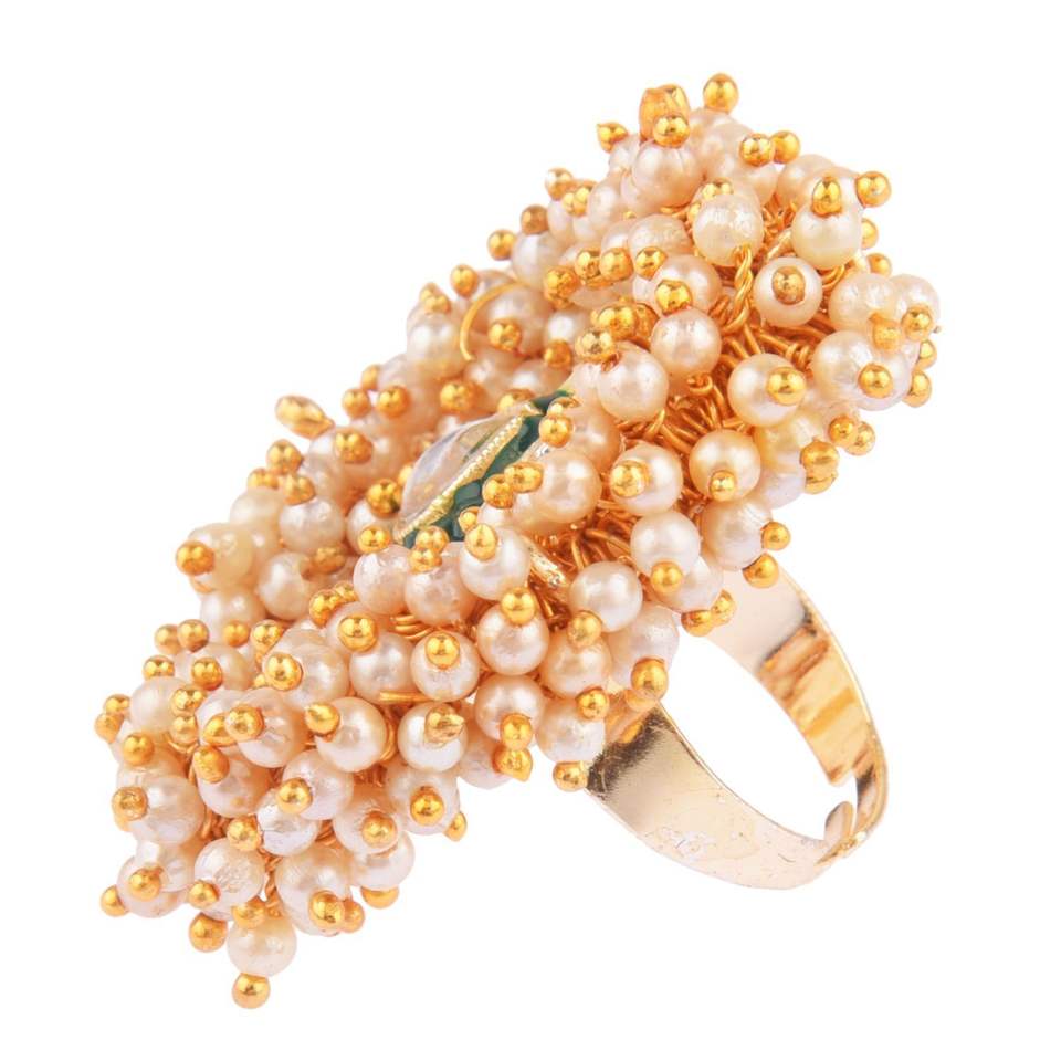 Unique Indian big size cocktail chunky kundan faux pearl beaded rings
