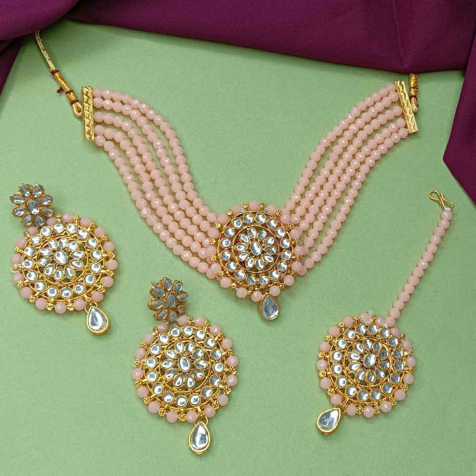 Design:Indian faux pearl beaded choker necklace set,