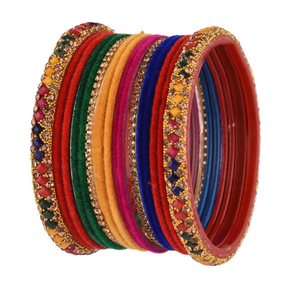 Embellished with crystals, cz,bangles with set of plain velvet bangles